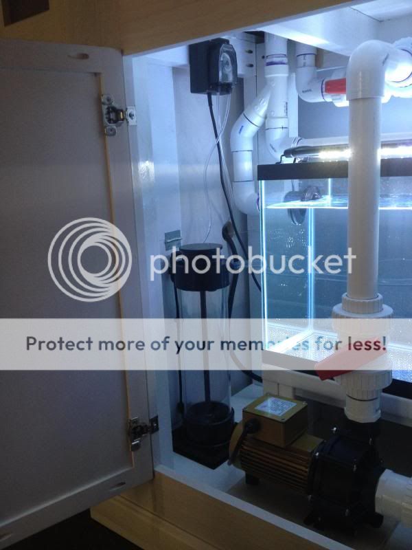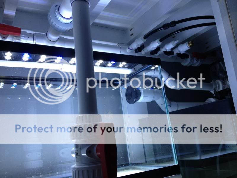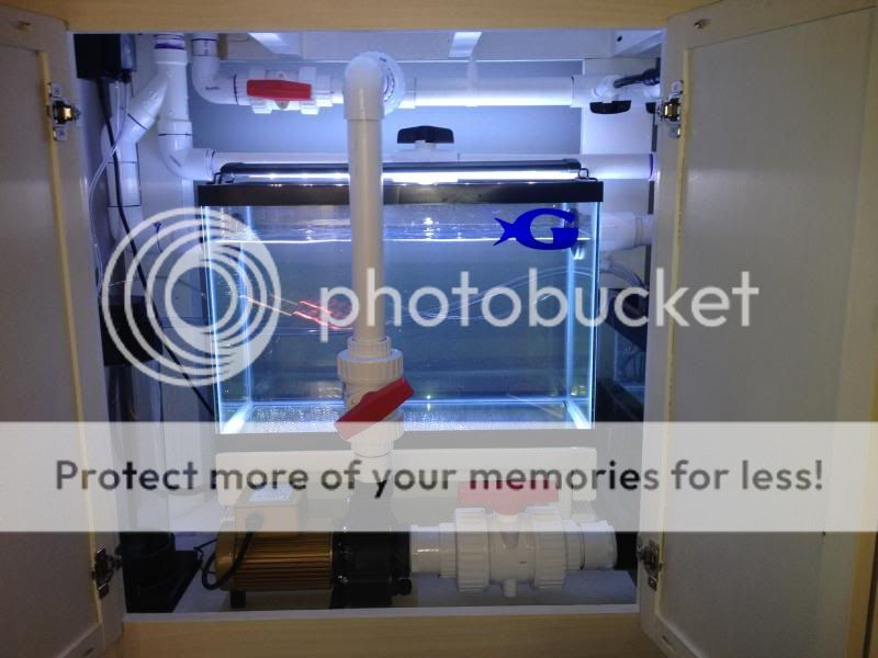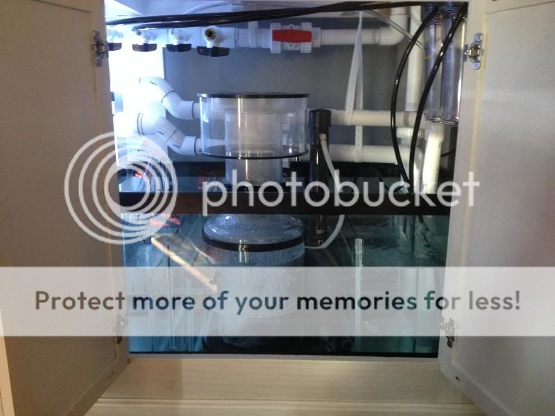 Thank you! I have spent a lot of time planning and saving for this tank so the neatness was the result. My 75 was more or less thrown together. I have the tank filled with fresh RO water now with the pumps running. The MP40's are still on the 75g and will be the last thing thats moved over once I sell that tank. So far, so good. Only 2 leaks, one at the return pump inlet and one on an elbow from the drain (Its right over the sump so no worrisome leaks around bulkhealds (thank god). Now I am trying to locate the "noise" and dampen it. The siphon break in my return outlets is one noise that I will try to eliminate as the water under pressure is shooting out of it making a splash effect in the overflow box. Another noise is the drain into the fuge, I believe if I add a "T" fitting in here with a downspout below the water level, that will reduce that and finally, the drain section in the sump; there is so much water falling that its crashing over the first baffle making another splashing noise. As for the skimmer and return pump, its relatively quiet. Just a small hum that is not noticeable when doors are closed. As for the update since the last one: